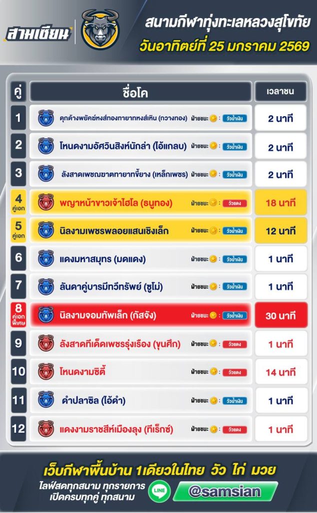 สรุปผล สนามชนโคทุ่งทุ่งทะเลหลวง วันที่25 มกราคม 2569