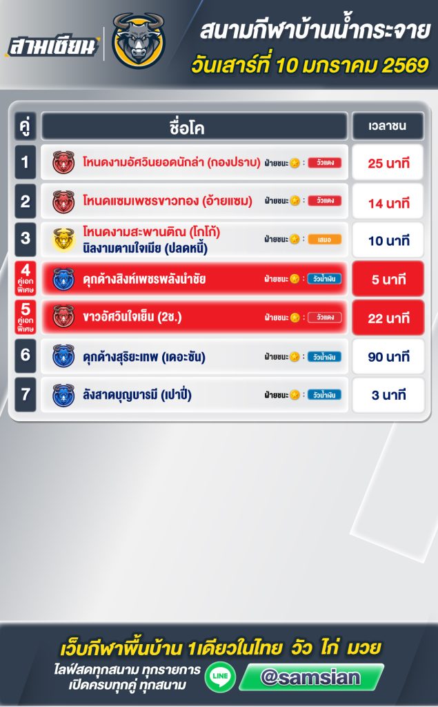 สรุปผล สนามชนโคบ้านน้ำกระจาย วันที่10 มกราคม 2569
