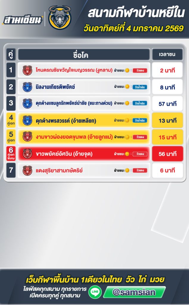 สรุปผล สนามชนโคบ้านหยีใน วันที่4 มกราคม 2569