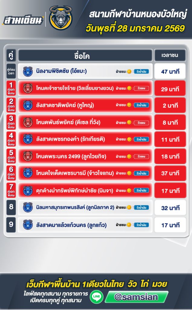 สรุปผล สนามชนโคหนองบัวใหญ่ วันที่28 มกราคม 2569