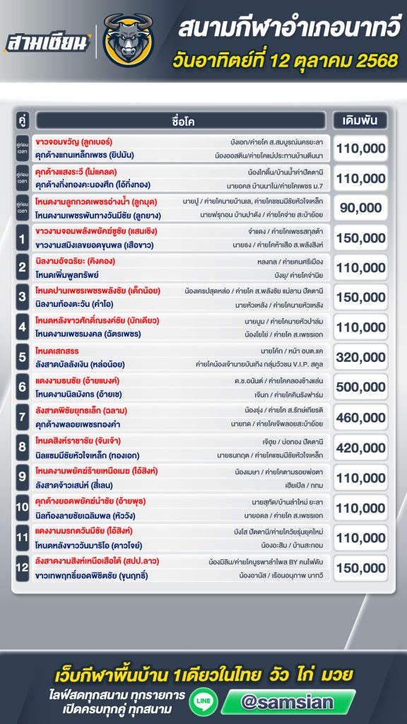 โปรแกรมวัวชน สนามกีฬาชนโคนาทวี วันที่ 12 ตุลาคม 2568
