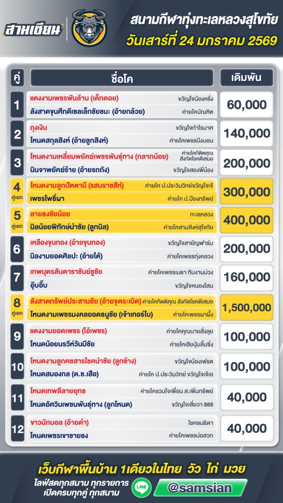 โปรแกรมวัวชน สนามกีฬาชนโคพระเเสง วันที่24 มกราคม 2569